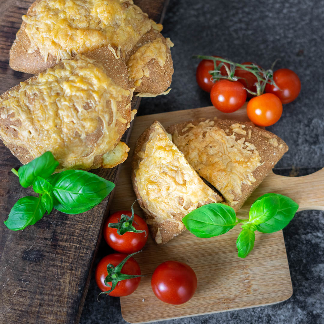 Wer kann zu Brot mit getrockneten Tomaten, frischen Basilikum und geschmolzenem Käse schon Nein sagen? Wir nicht und selbst als Gesundheitsbewusste müssen wir das jetzt auch nicht mehr, denn die Brotbackmischung, die hier als Basis dient, hat nur 1,5 g Kohlenhydrate pro 100 g.