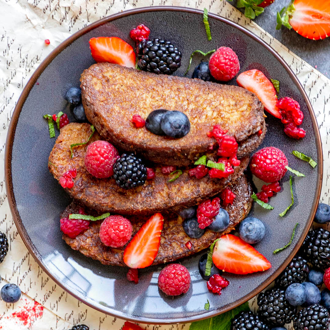 Mit unserer Keto Protein-Toast-Backmischung kannst du so ein super einfaches und leckeres Frühstück zaubern. Dank unserer Backmischung ist dein French Toast nicht nur getreide- & glutenfrei, sondern auch reich an Protein & Kollagen.