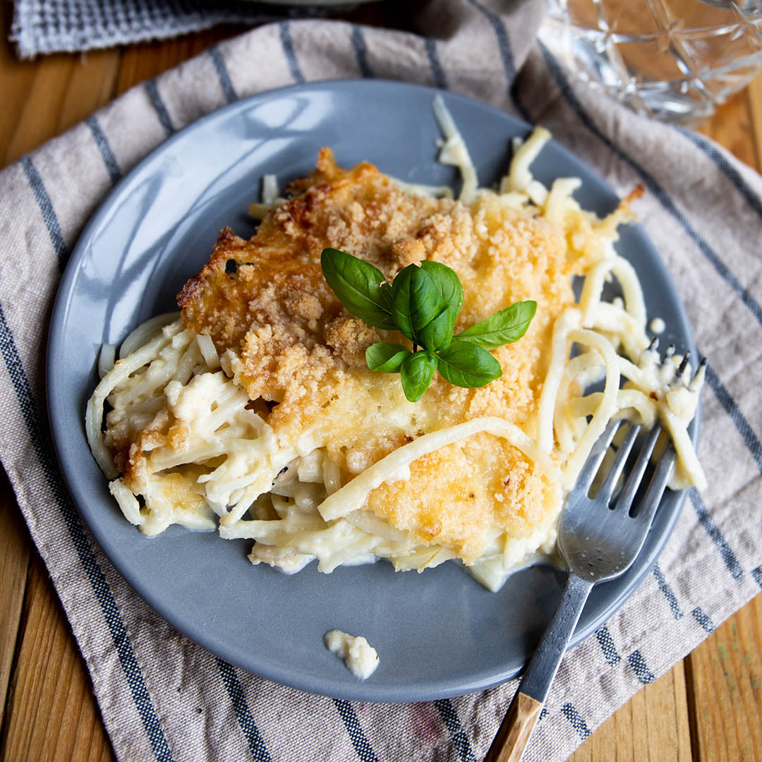 Wir verwenden natürlich die Nudeln von Palmini, die aus Palmenherzen gemacht sind, nur 4 g Kohlenhydrate und 20 Kalorien pro Portion haben, vegan, glutenfrei und zuckerfrei sind! So braucht ihr nicht mit dem Käse zu sparen und könnt diesen cheesy Klassiker in vollen Zügen genießen. 100% Low-Carb, Keto, sojafrei sowie getreide- & glutenfrei!