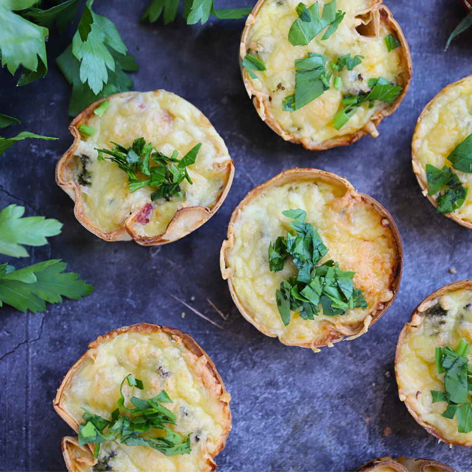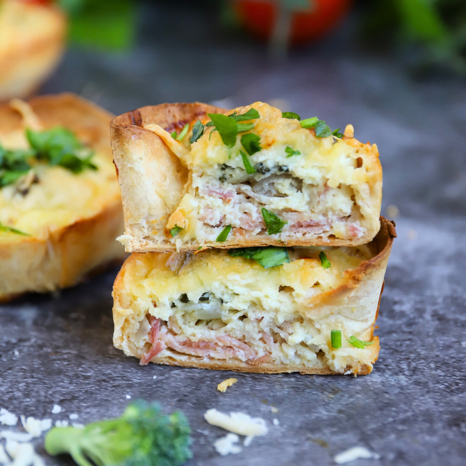 Gefüllt mit einer cremigen Ei-Frischkäse-Mischung, Speck, Brokkoli und würzigem Käse werden die Wraps im Ofen zu goldbraunen, herzhaften Mini-Quiches – außen leicht knusprig, innen wunderbar saftig. Ob zum Mitnehmen, Partyfood oder für ein schnelles Mittagessen: Diese Muffins lassen sich wunderbar vorbereiten und schmecken warm wie kalt. Und das Beste? Aus den restlichen Wrap-Stücken kannst du ganz einfach knusprige Low-Carb Tortilla-Chips zaubern – kein Food Waste, aber 100% Geschmack!