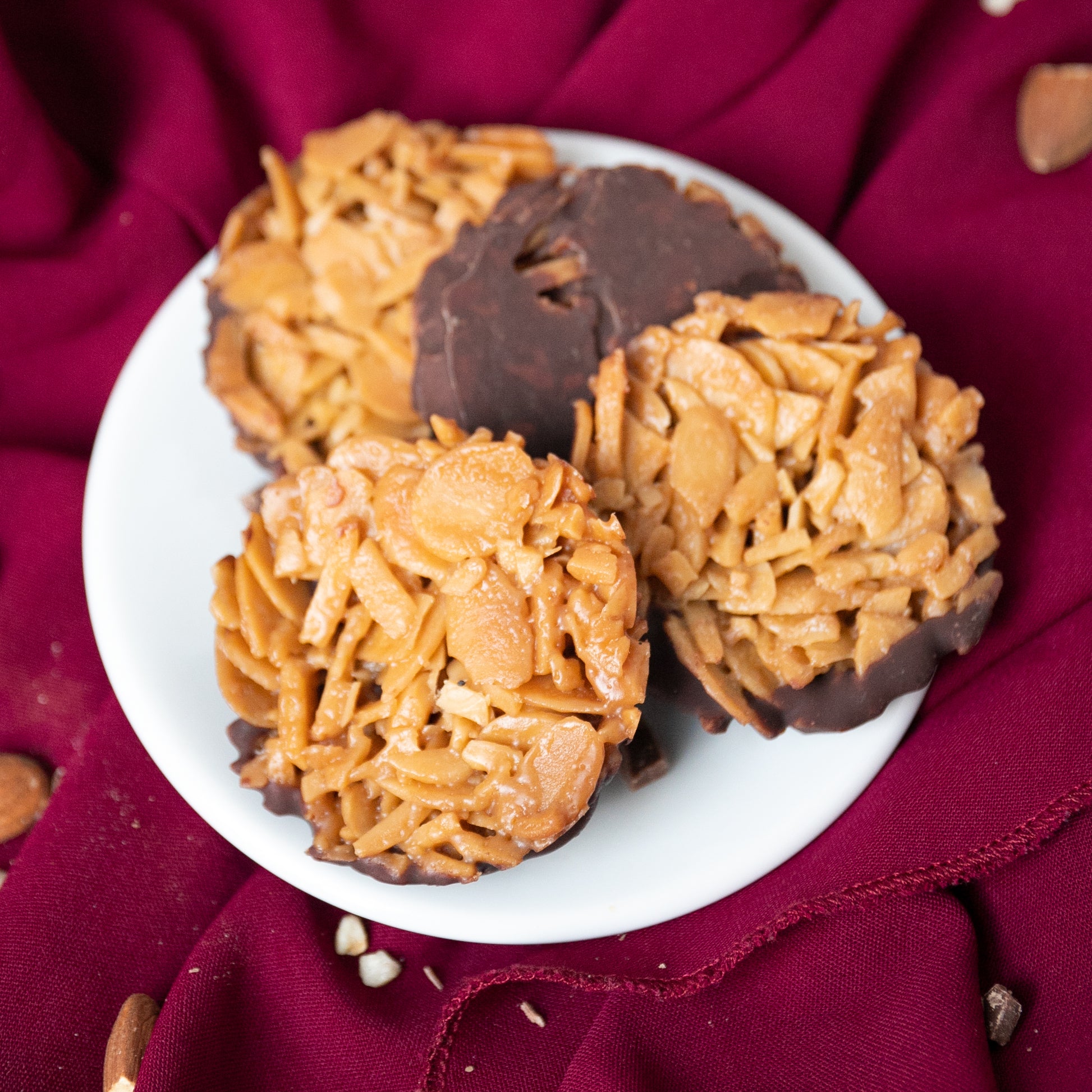 Knusprig gebackene Röstmandeln, überzogen mit zart schmelzender Schokolade. Wer kennt nicht den Weihnachtsgebäck-Klassiker Florentiner und sie dürfen einfach zu Weihnachten nicht fehlen! Deswegen haben wir diese Lower-Carb* & Keto Leckerbissen in unserer Simply Keto Weihnachtsbäckerei entwickelt, damit du auf die köstlichen Florentiner nicht mehr verzichten musst und trotzdem deine kohlenhydratarme* und ketogene Ernährung zu Weihnachten durchziehen kannst.