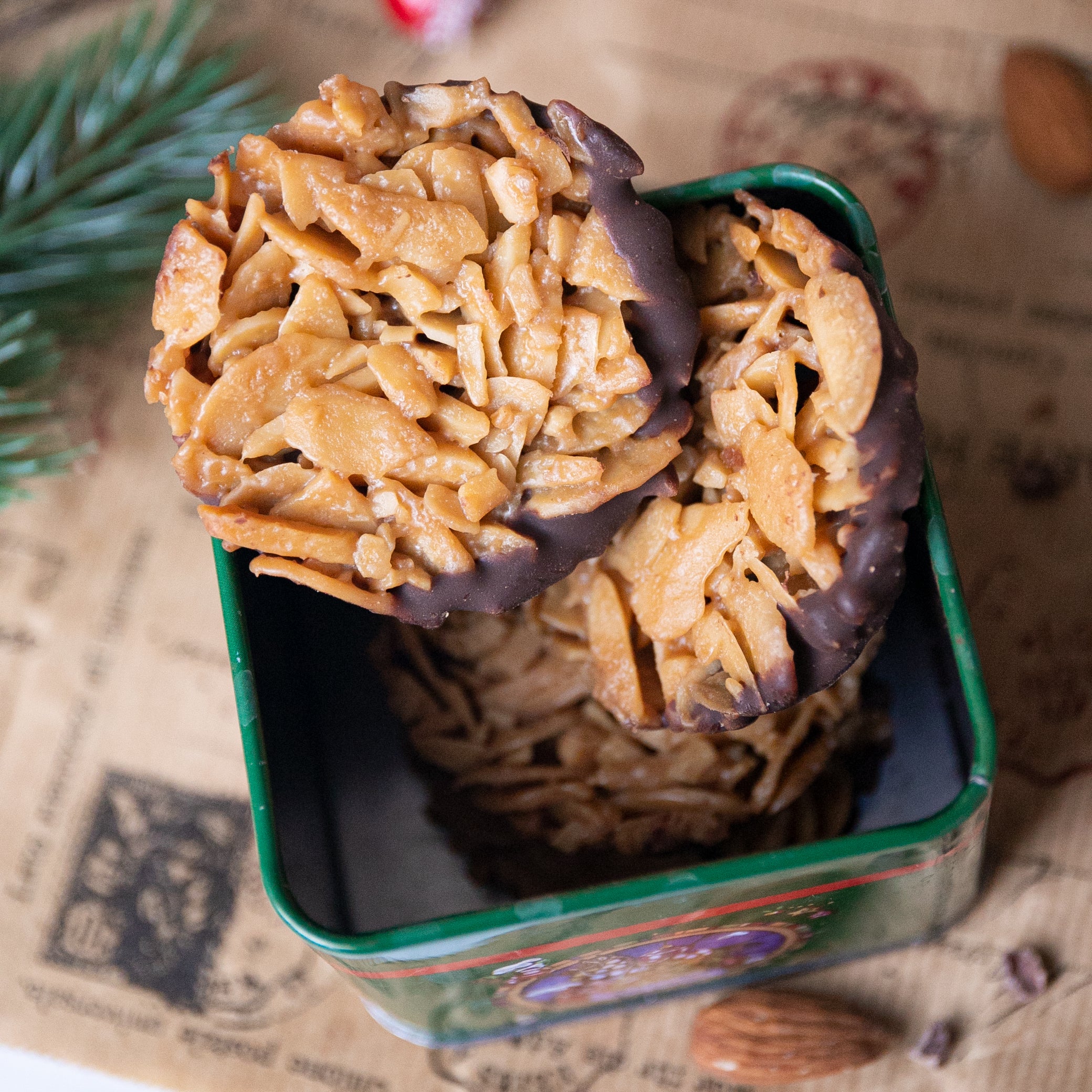 Weihnachtliche Florentiner mit Edelbitter-Schokolade - 100% Keto & zuckerfrei!