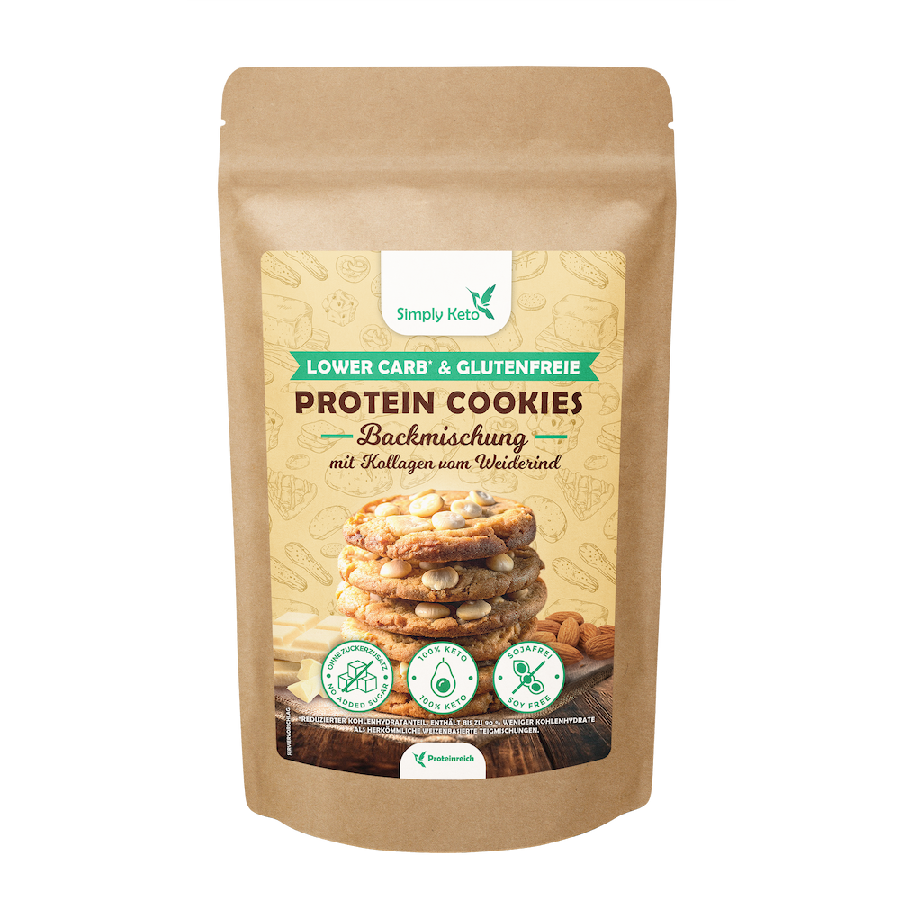 Frisch gebackene Cookies, die zu deinem Low-Carb & Keto Alltag passen? Mit dieser Backmischung zauberst du im Handumdrehen rund acht große Cookies – außen leicht knusprig, innen saftig, mit feinem Vanille-Aroma. Statt klassischem Mehl bildet Mandelmehl die Grundlage; verfeinert mit Kollagenhydrolysat vom Weiderind, das dein Aminosäureprofil (z. B. Glycin & Prolin) sinnvoll ergänzt. Gesüßt wird ausschließlich mit Erythrit – ganz ohne Zuckerzusatz und damit natürlich Lower-Carb*.