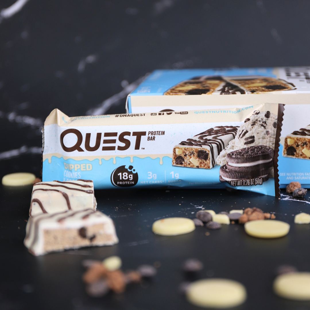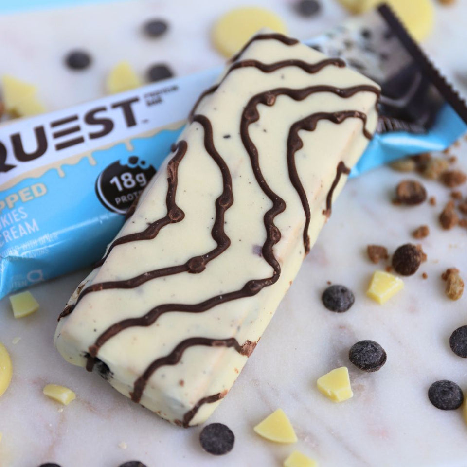 Der leckere Geschmack und die qualitative Zusammensetzung machen den Quest Bar zum beliebten Proteinriegel. Der Cookies & Cream Bar liefert ganze 20 g hochwertiges Eiweiß pro Riegel und ist komplett ohne Zuckerzusatz! Mit nur 4 g verwertbaren Kohlenhydraten ist der Quest Bar ein idealer Keto-Snack für zwischendurch, auf der Arbeit, beim Wandern oder im Fitnessstudio. Die Cookies & Cream Geschmacksrichtung ist quasi wie ein knuspriger Lower-Carb* Keks für die Hosentasche und schmeckt auch super als Dessert.